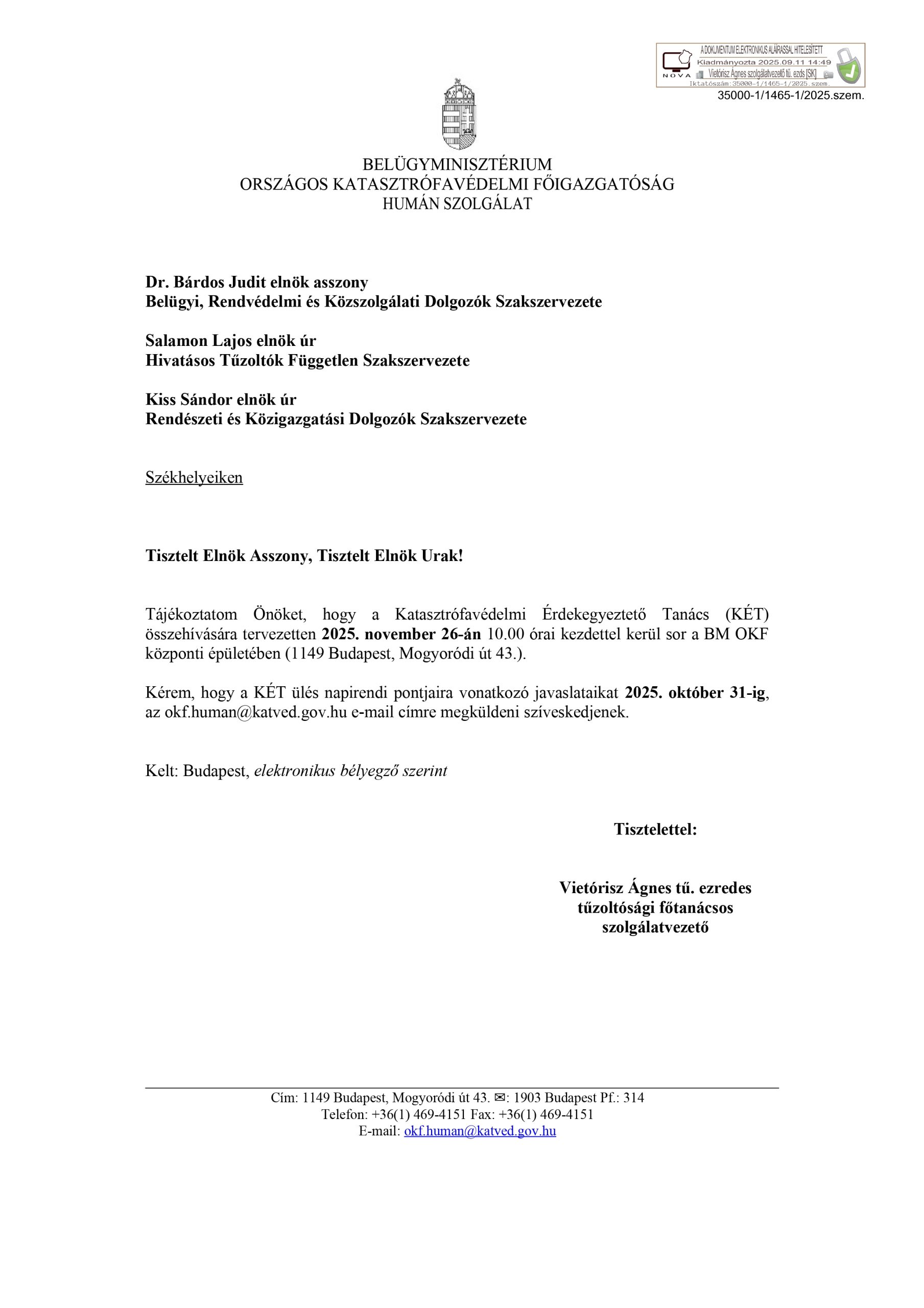 Tájékoztató KÉT ülés tervezett összehívásáról